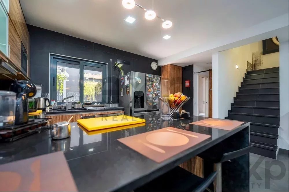 Modernes Haus mit 3+1 Schlafzimmern und 176 m² Wohnfläche, das vor kurzem mit hochwertigen Oberflächen gebaut wurde. Im Erdgeschoss befindet sich ein großes Wohnzimmer mit Kamin, ein Badezimmer mit Dusche, eine voll ausgestattete Küche mit Insel und Zugang zu einer großen Terrasse mit Grill und einem entspannenden Wasserbrunnen an der Wand.