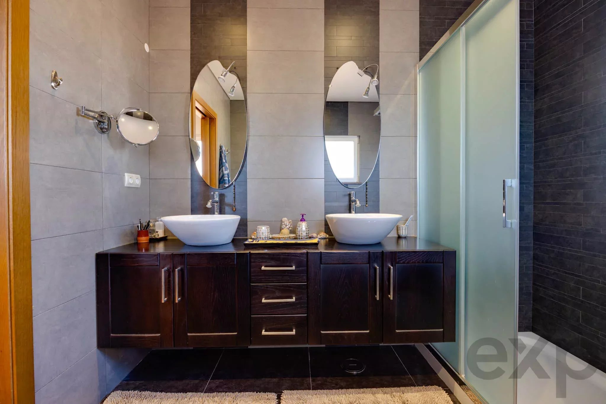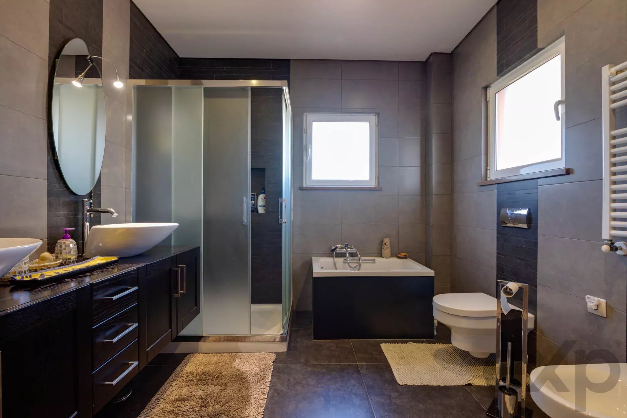 Inside, the 347 square meters of living space flow effortlessly, bathed in natural coastal light that pours through heavy-duty double-glazing. You get the aesthetic warmth of a traditional Portuguese home, backed by serious modern engineering. Carrying a Class A energy certificate and equipped with 7 dedicated solar panels on the roof, you get the absolute luxury of cool summers and warm winters without the stress of high utility bills. With four generous bedrooms, four full bathrooms, and a massive enclosed garage, you have all the space necessary to host visiting family. And whether you're sleeping soundly or locking up to travel back home for a few weeks, the complete, wired alarm system ensures your peace of mind is never broken.