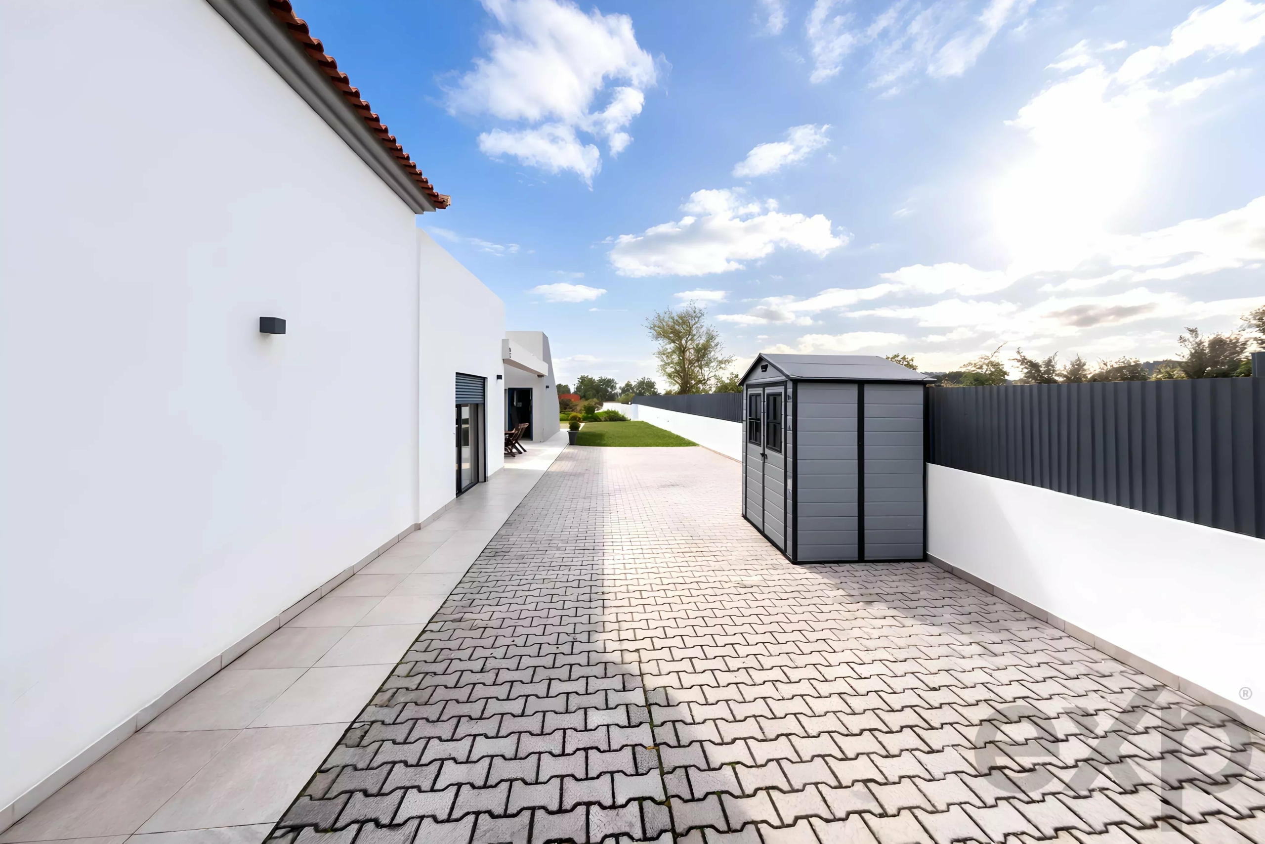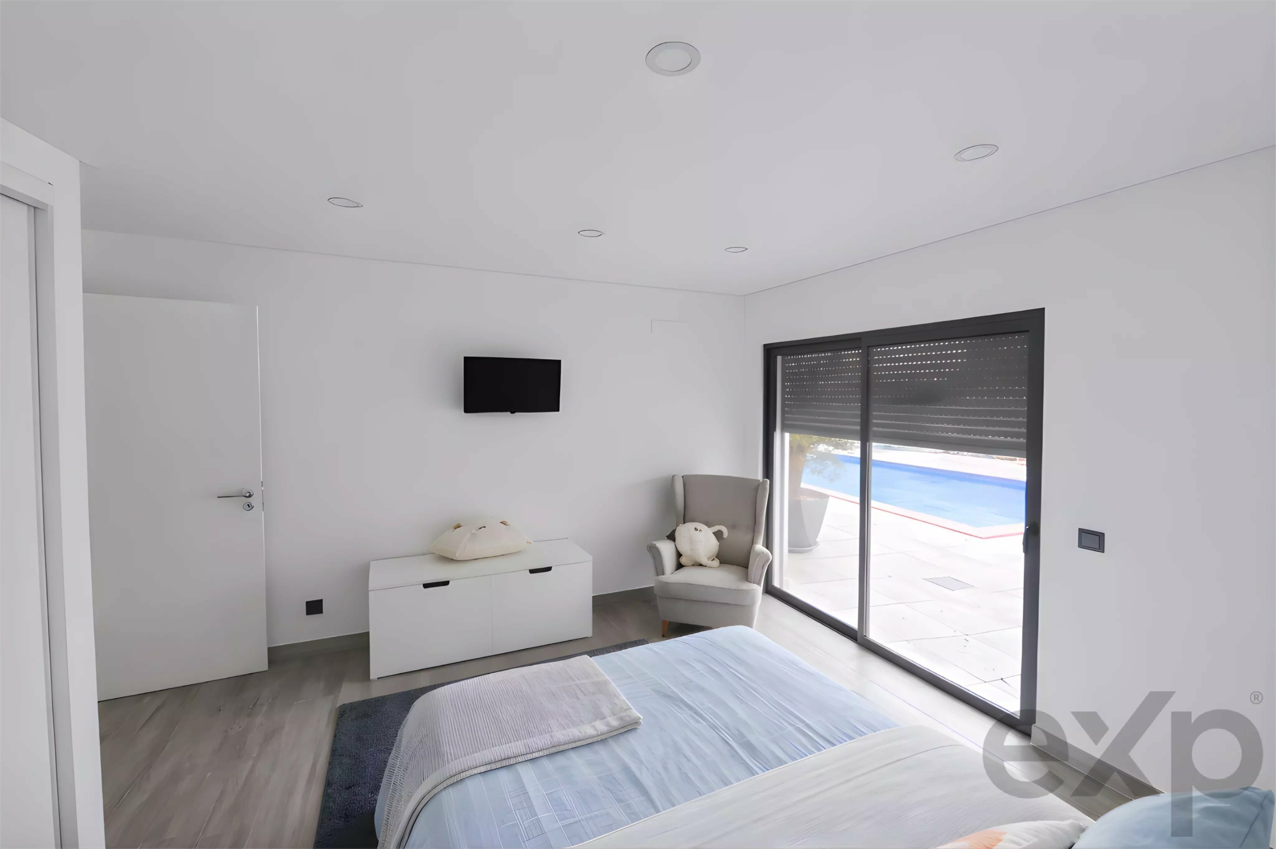 Outdoors, a 7 x 4 meter swimming pool with pre-installation for water heating enhances the lifestyle appeal. The pool can be filled either through the artesian borehole or the public water supply, allowing efficient resource management. The expansive plot offers ample space for landscaped gardens, an outdoor lounge, exterior kitchen or simply peaceful enjoyment of privacy. Exterior sectional lighting, automatic gate, alarm system connected to a security company and fibre optic internet infrastructure throughout the house highlight the property’s quality standards.