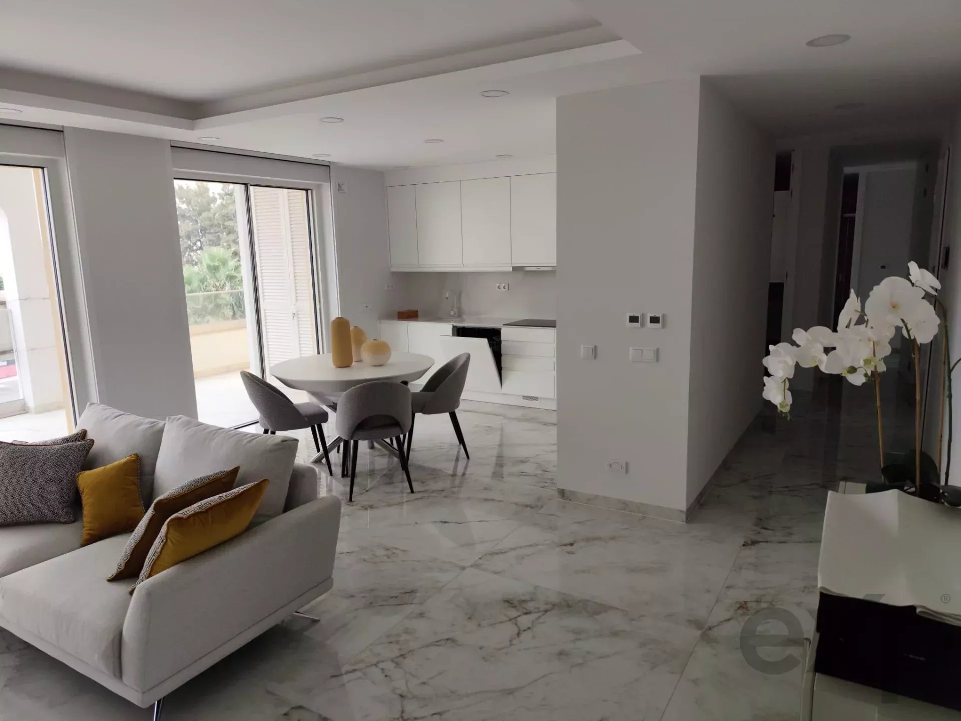 Inside, the bright and generous living area connects directly to the exterior. The modern kitchen is ready for built-in appliances. The bedrooms feature fitted wardrobes, including one en-suite, while the bathrooms stand out for their contemporary and functional design.