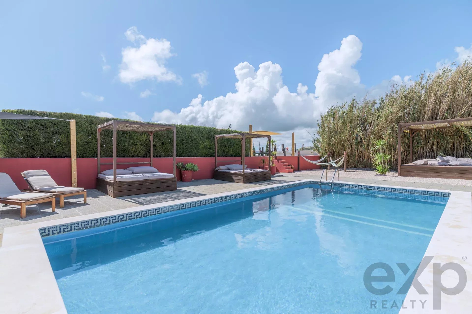 Located at the far end of the property, Building C comprises two well-appointed apartments: a two-bedroom unit on the first floor featuring a rooftop terrace with stunning panoramic views, and a three-bedroom apartment on the ground floor. Additional storage includes a spacious room beneath the staircase, as well as a large, dedicated storage area near the tennis court—ideal for gardening tools and equipment.