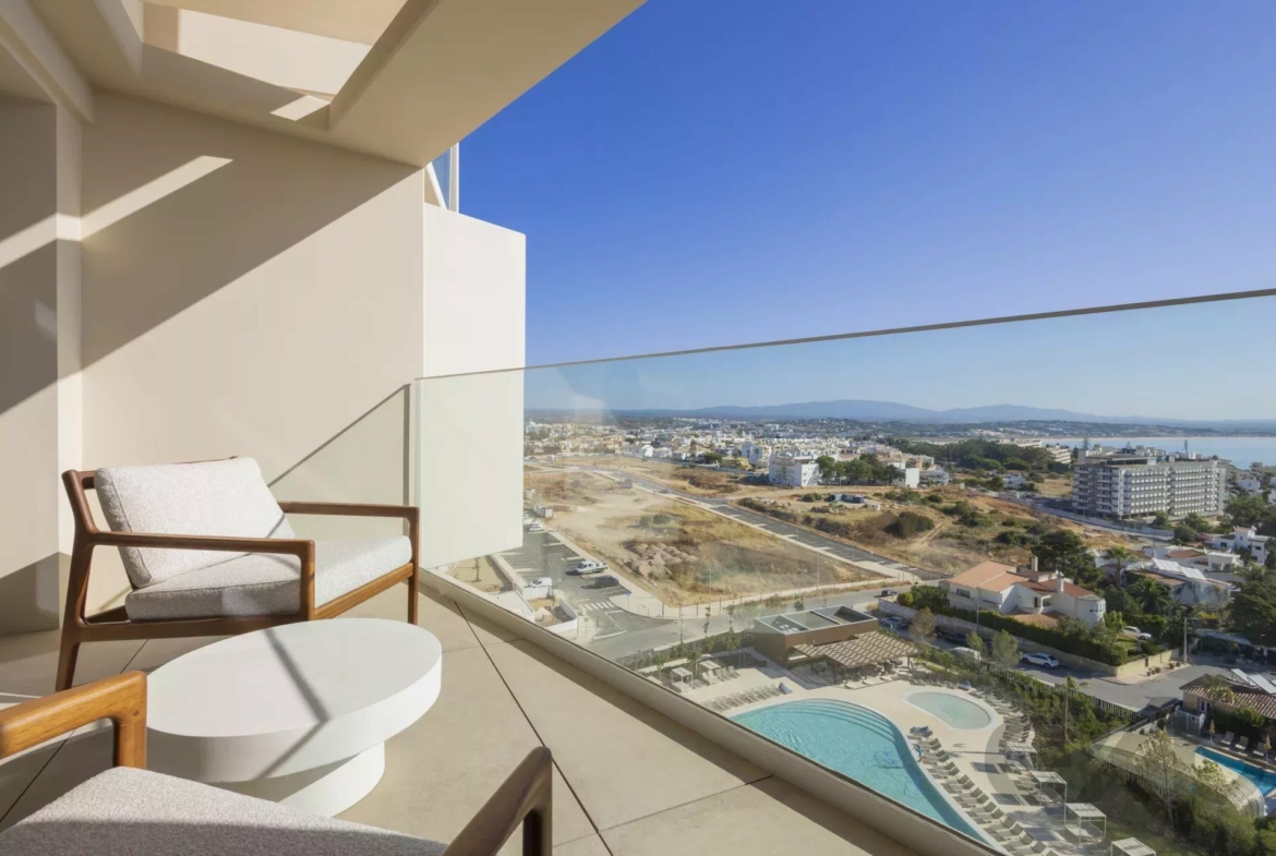 We are proud to present this stylish two-bedroom apartment in the prestigious Sun Cliffs Resort, Lagos, offering modern comfort, high energy efficiency, and a prime location just minutes from the stunning beaches of the Costa D’Oiro.