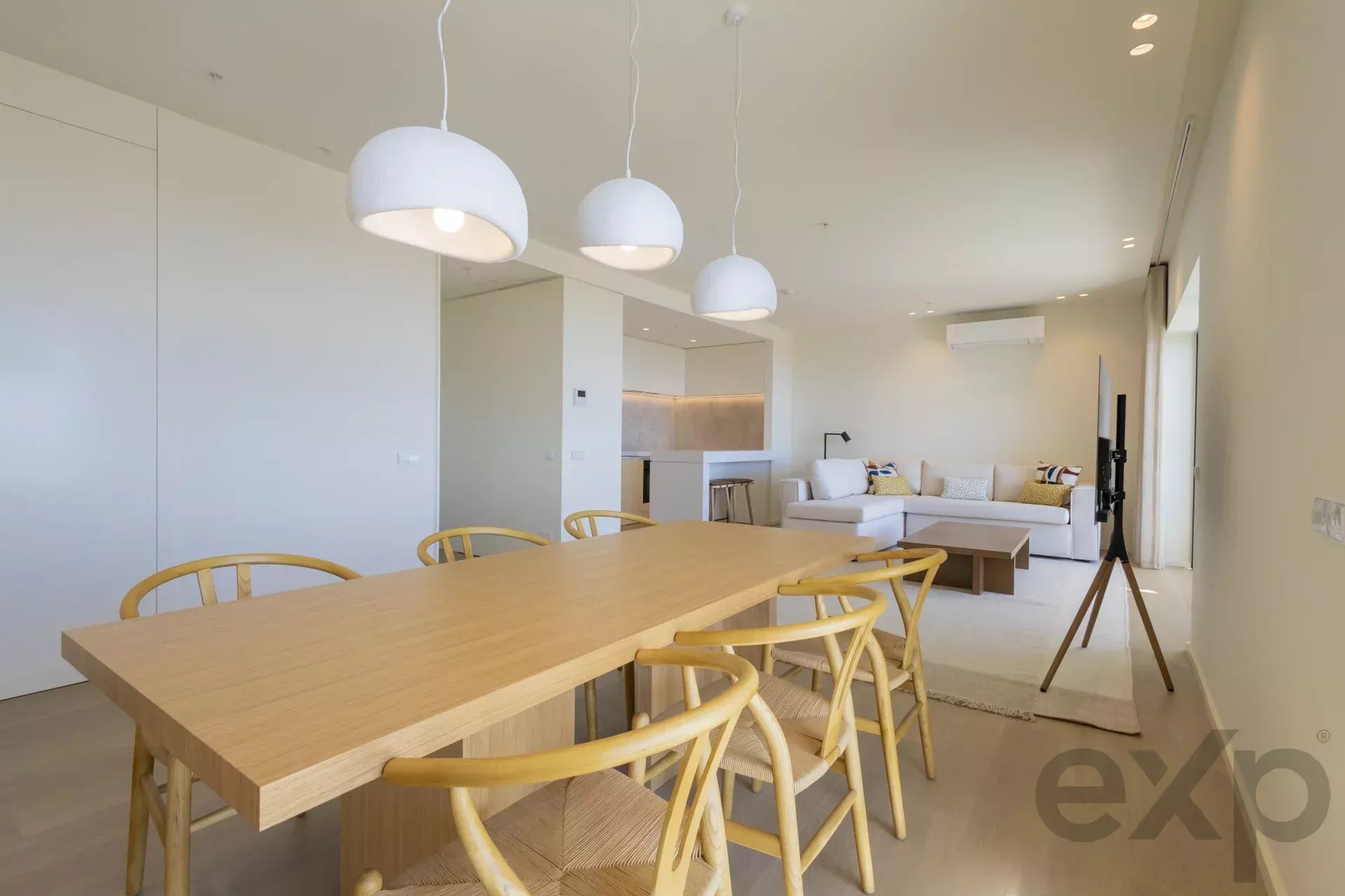 With an approximate total area of 160sqm, this apartment features a spacious open-plan living room and kitchen, two bathrooms, a suite with walk-in closet, a second bedroom, and three balconies providing abundant natural light and open views.