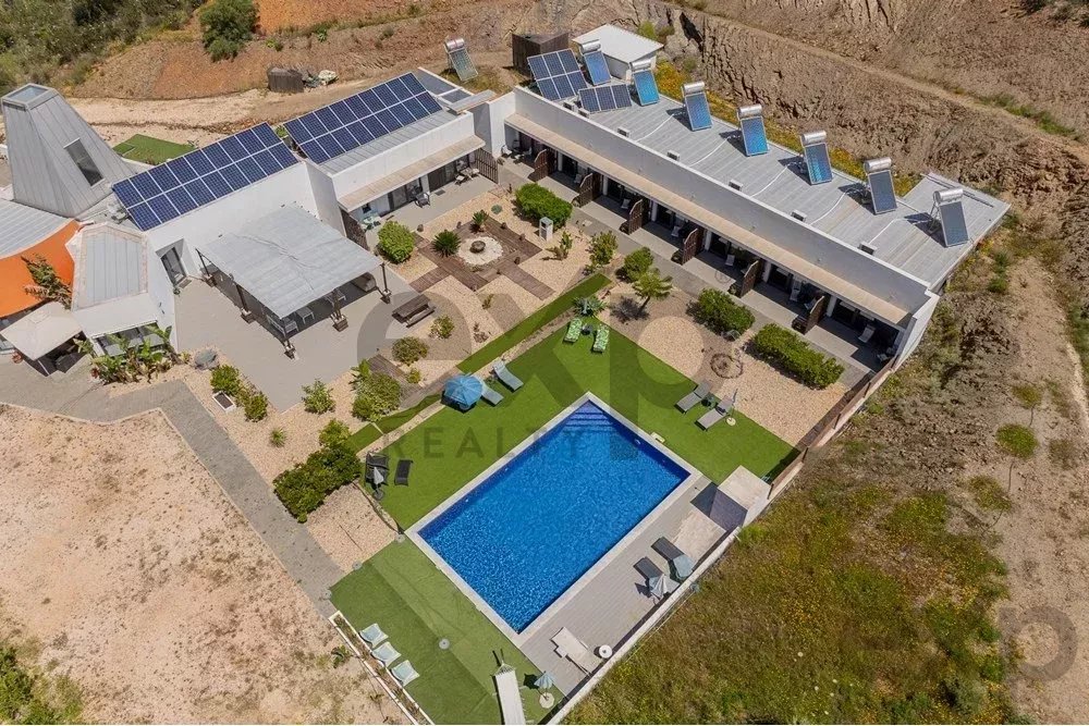 The property is self-sustainable in terms of energy, water and sewage, as it has 48 photovoltaic panels, 24 batteries, a 119m2 deep borehole with a pump for a deposit and 2 other pumps that distribute to each building (main, apartment and each suite) and a cesspit.