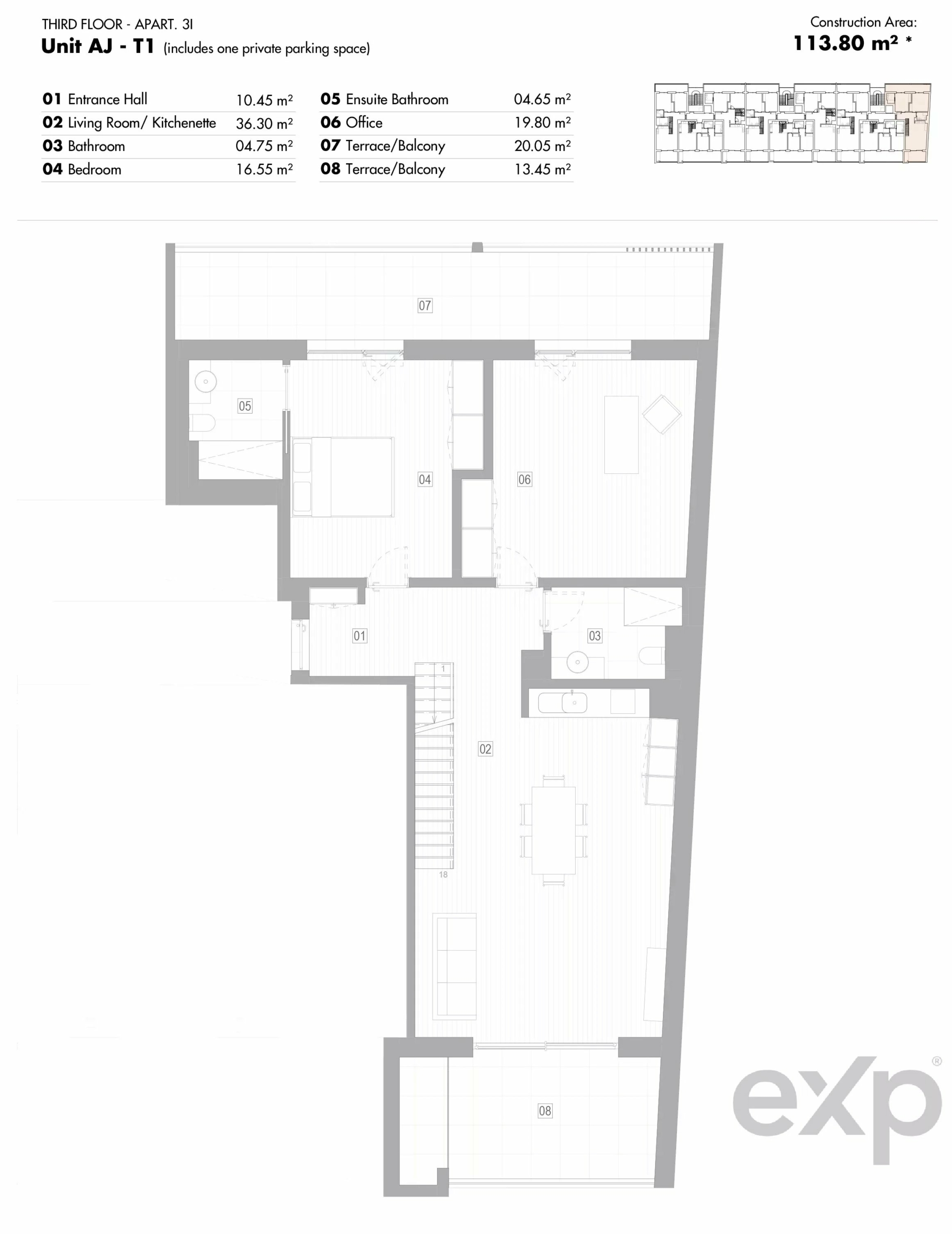 Grand Design: A massive split-level layout crowned by an expansive 79m² private rooftop terrace, perfect for entertaining, sunbathing, or a Jacuzzi setup.