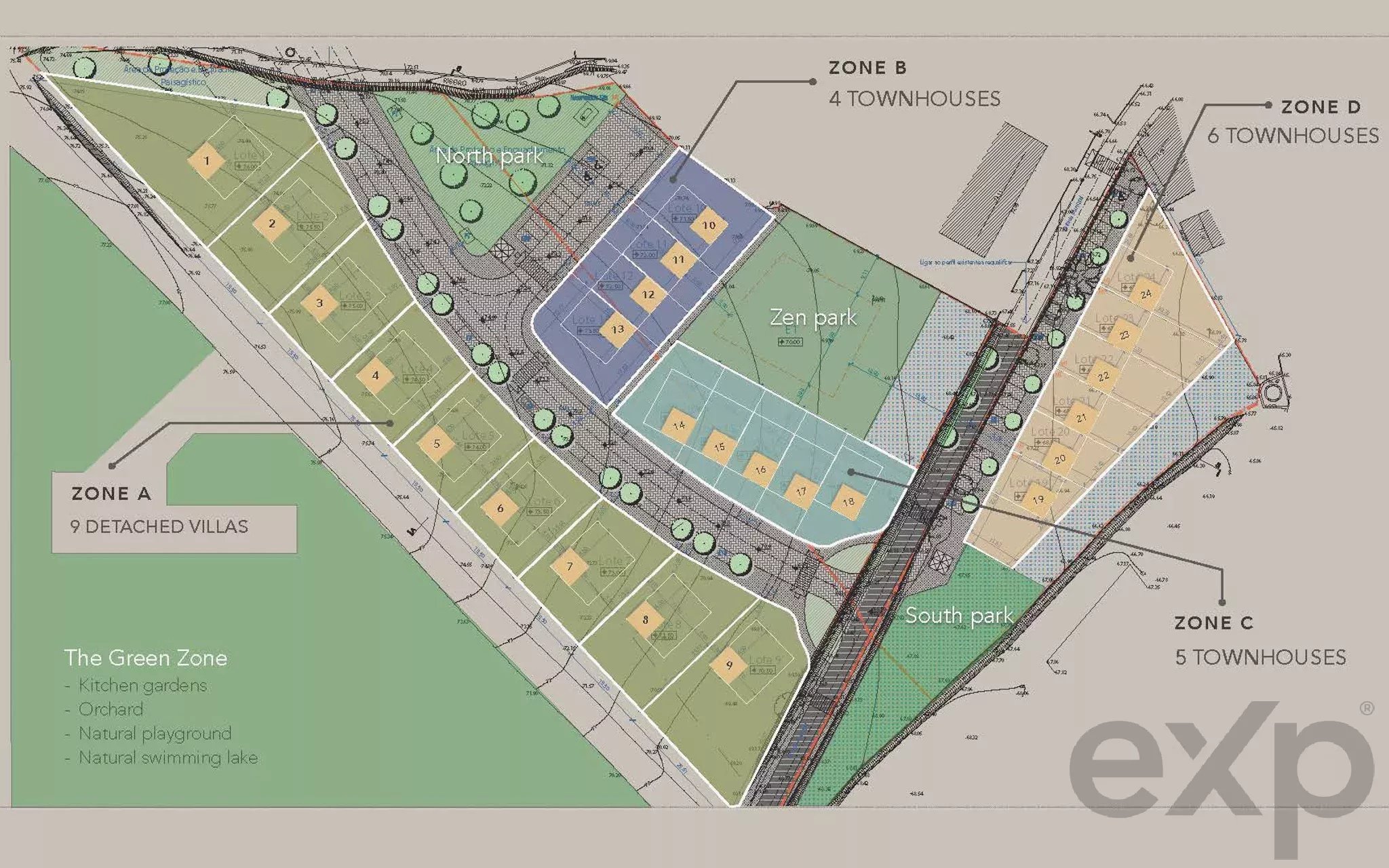Access to a communal natural swimming lake, Zen park, food forest, and organic kitchen gardens.
