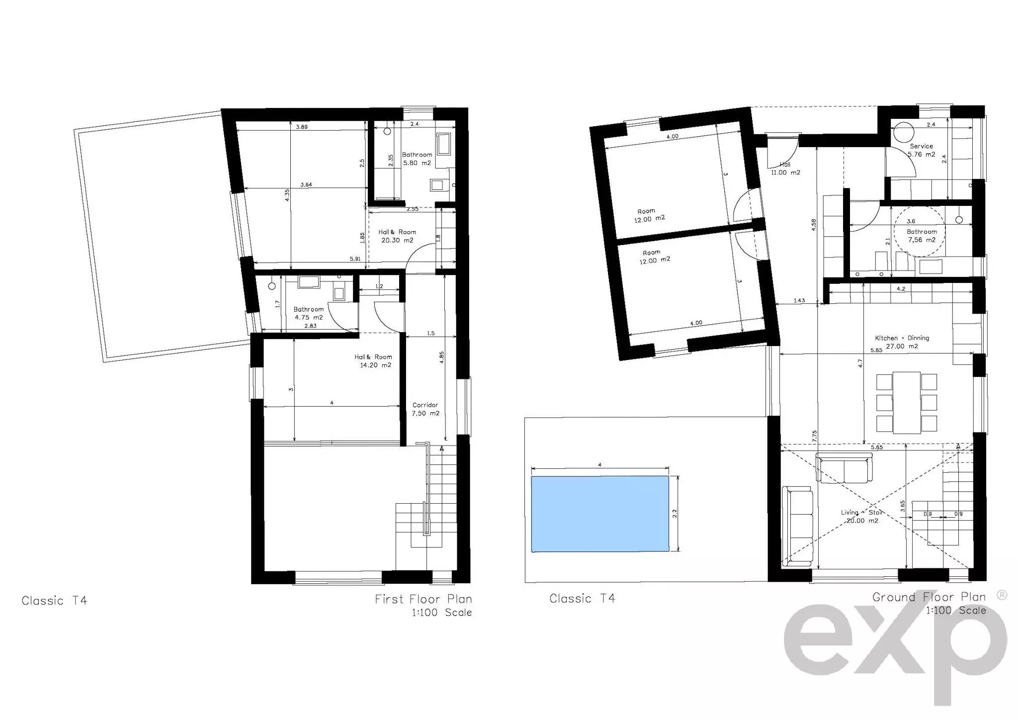 185 m² T4 detached villa on an average 628 m² plot with an average 468 m² garden.