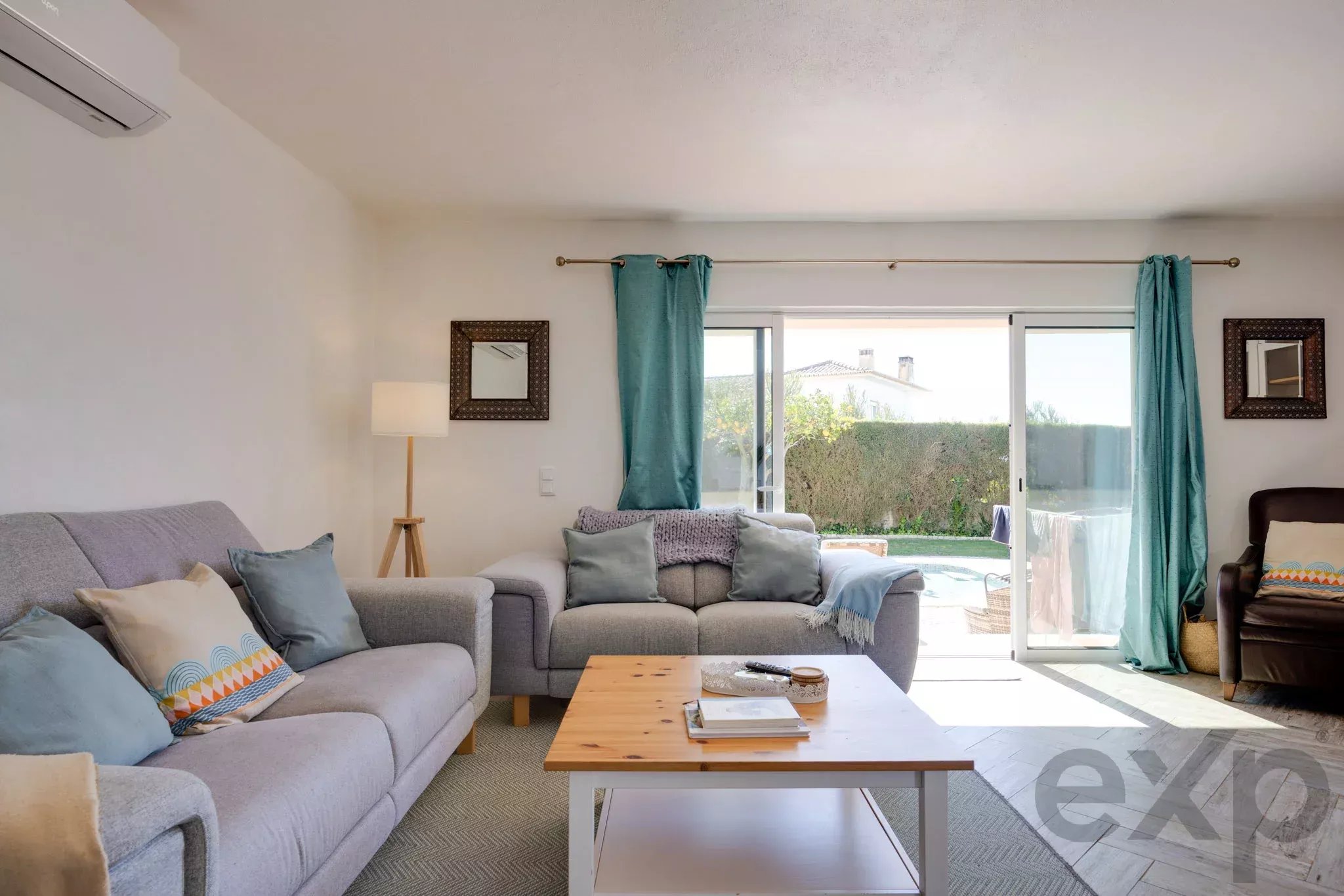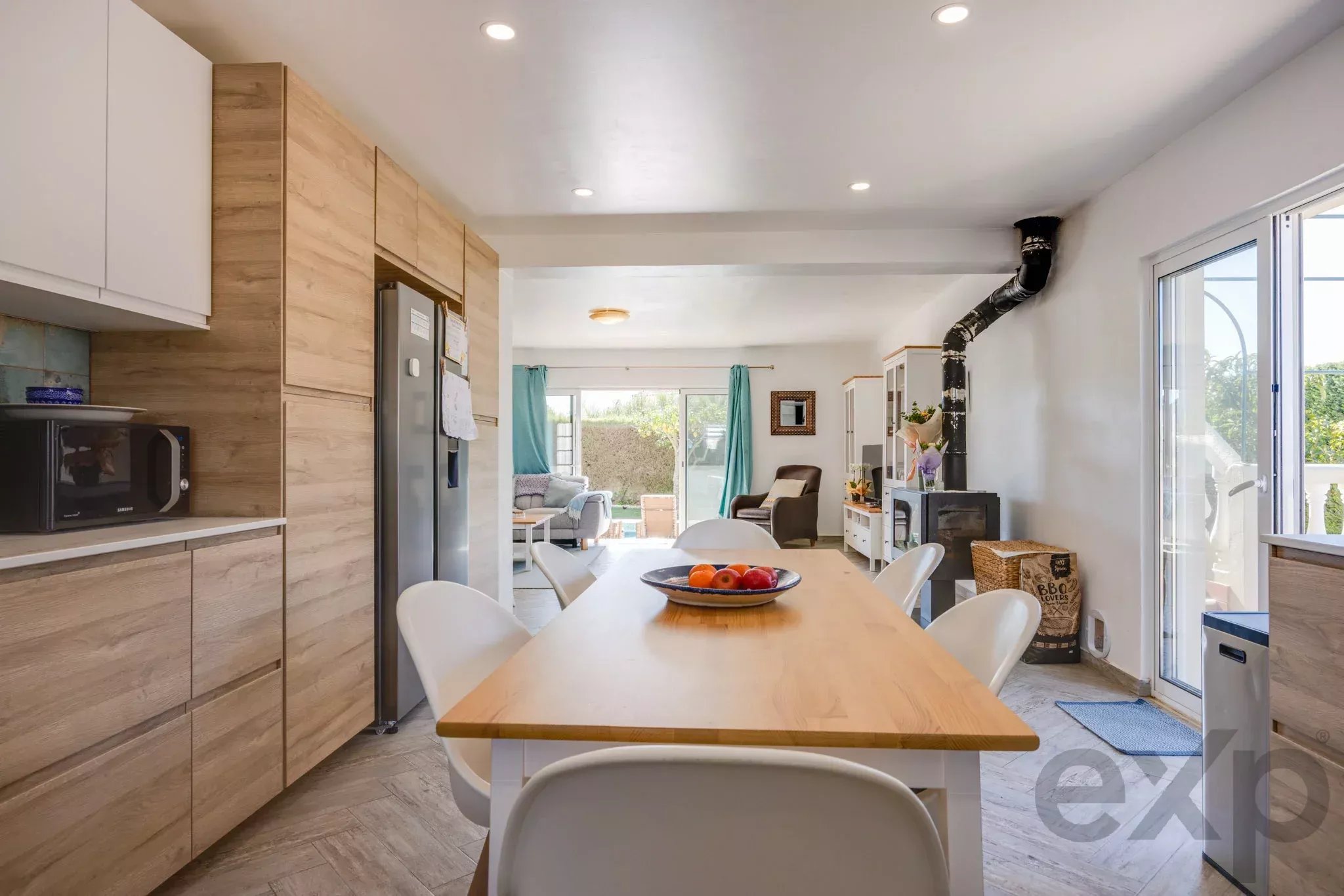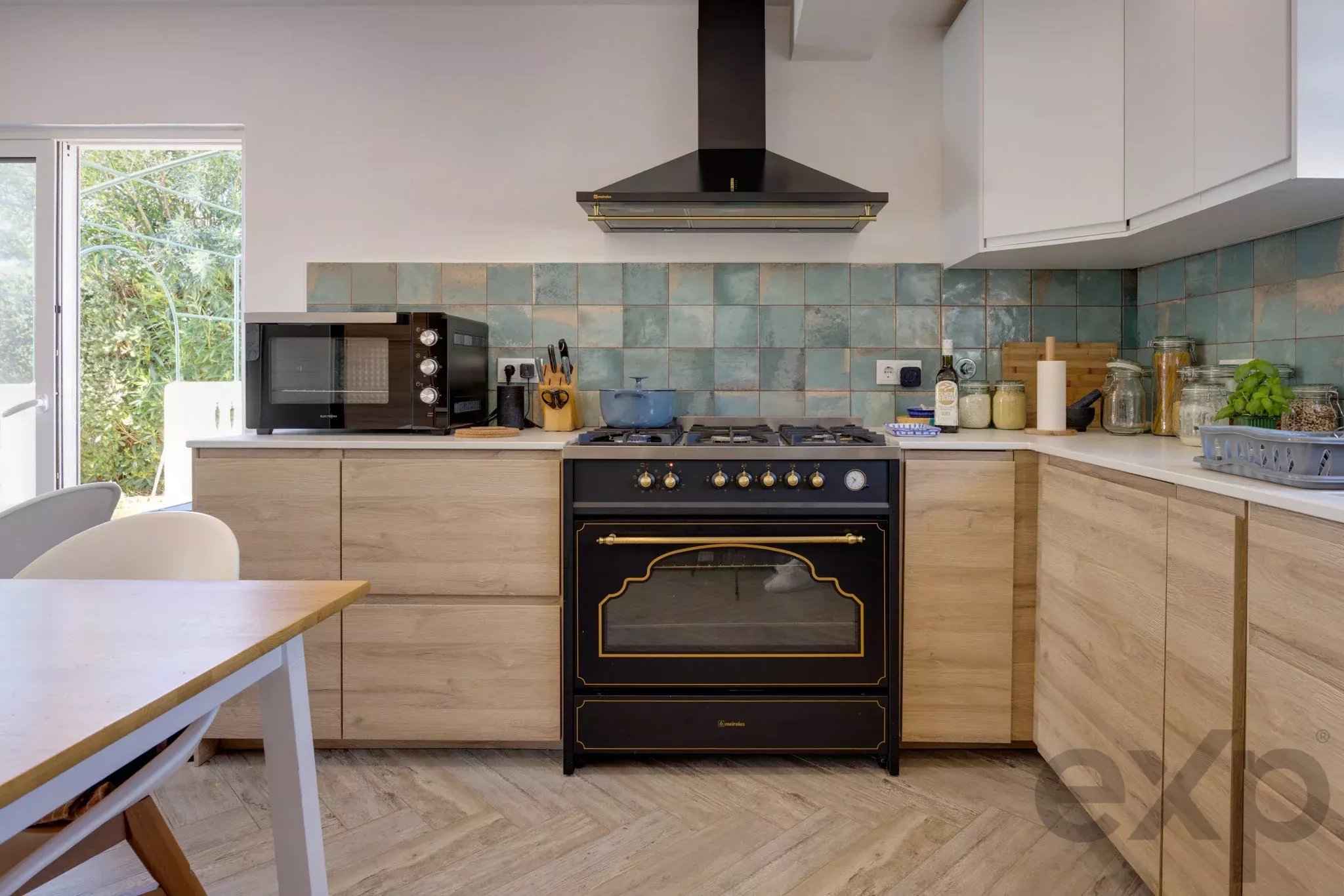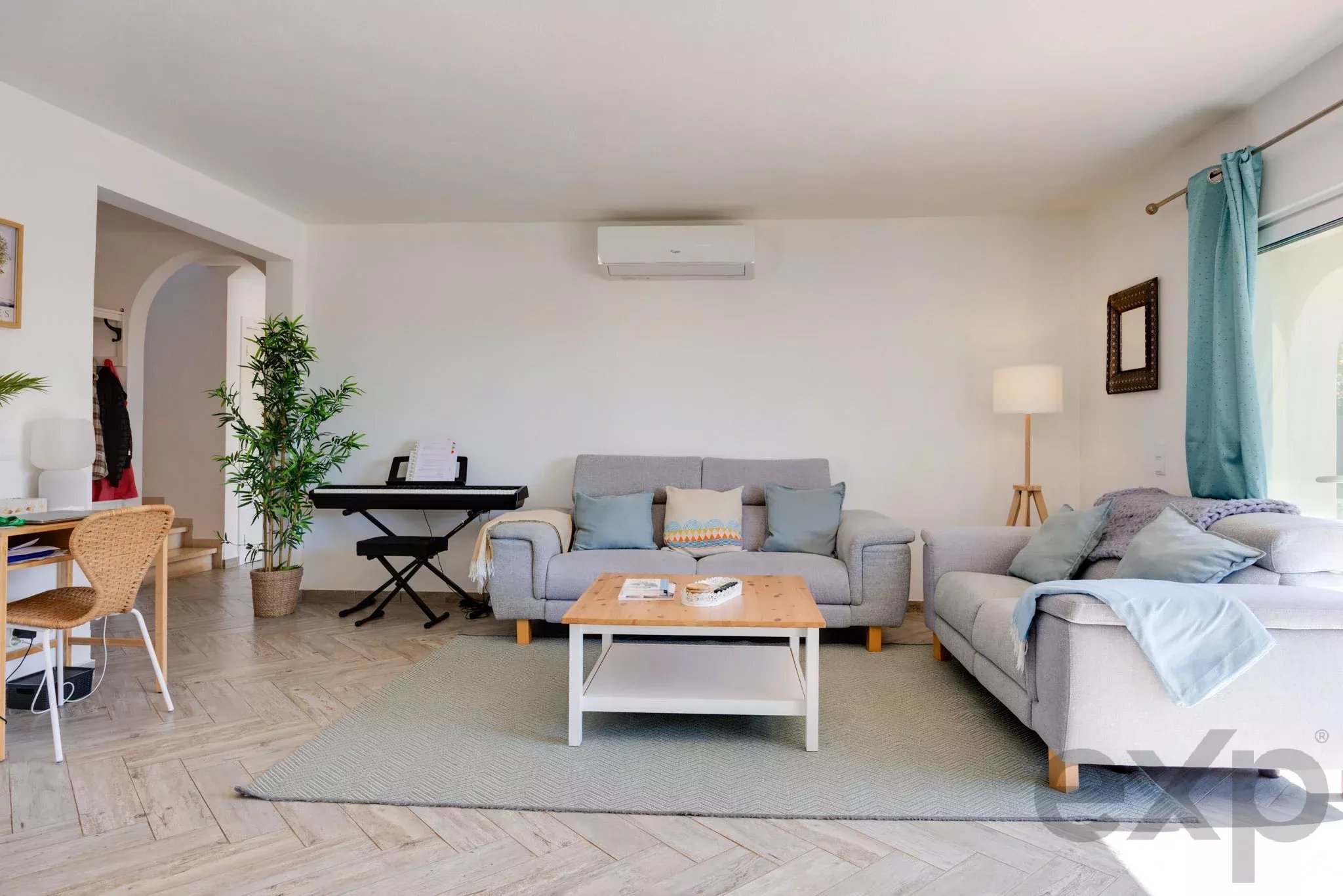 Step inside off the sun-drenched terrace, and your bare feet meet freshly laid, cool ceramic floor tiles that run seamlessly through every level of the 180m² home. The newly installed, fully equipped kitchen features sleek countertops and integrated appliances, catching the morning light perfectly. It's a highly functional space built for dropping bags of fresh market produce and pulling together a family meal without missing a beat of the conversation.