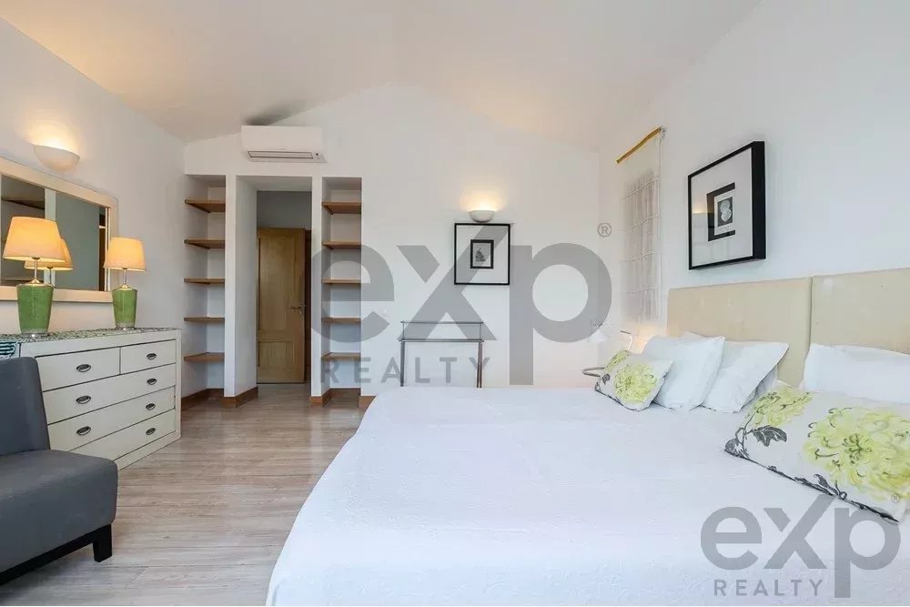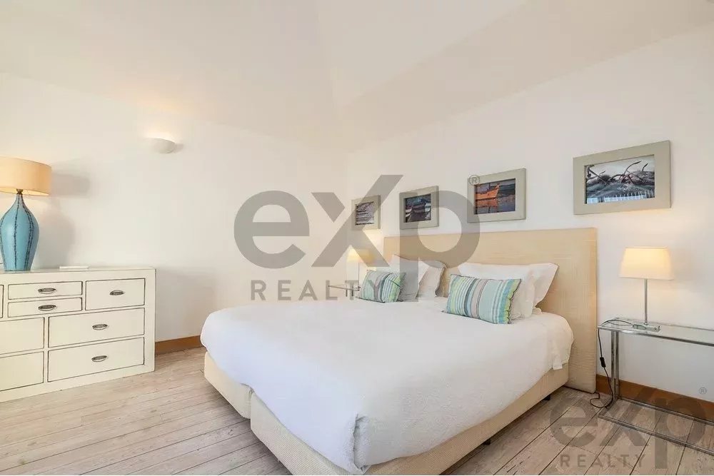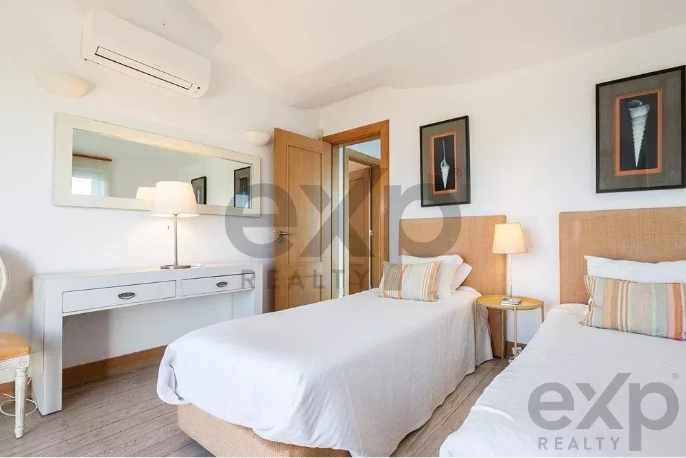 Set in a plot of more than 40,000 m², it offers a surrounding green area with well-kept lawned gardens, a private swimming pool, tennis court and terraces on the second floor, all with stunning views over the Ria Formosa and the ocean. A real postcard setting.