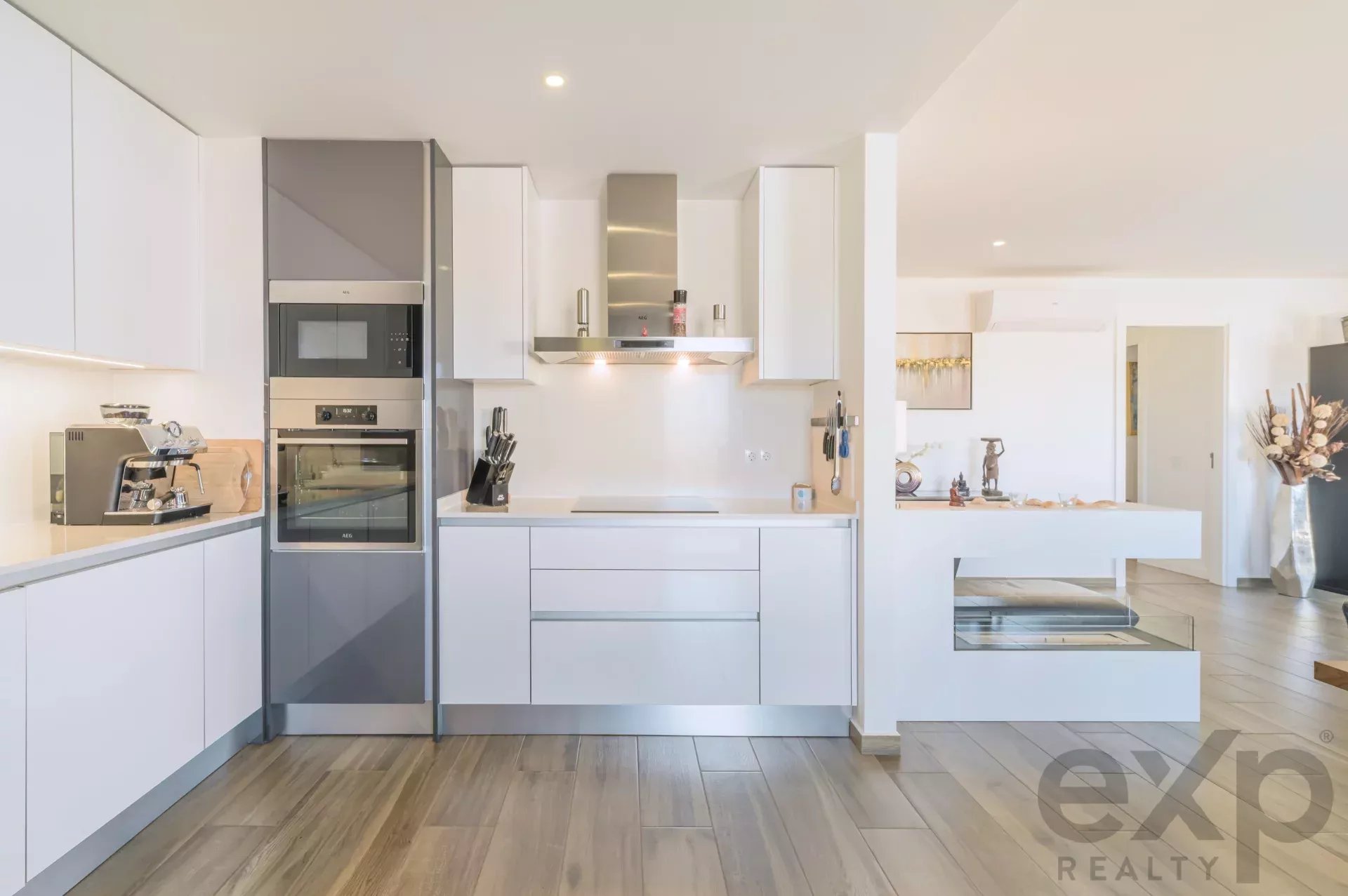 As you enter this 8th-floor penthouse, a spacious living room with a cozy fireplace opens onto a panoramic terrace overlooking the Algarve coast. The open-plan kitchen flows seamlessly into the social space, creating a perfect setting for hosting guests or enjoying quiet mornings. With natural light streaming in from multiple angles and seamless indoor-outdoor living, this apartment blends elegance, comfort, and coastal charm.