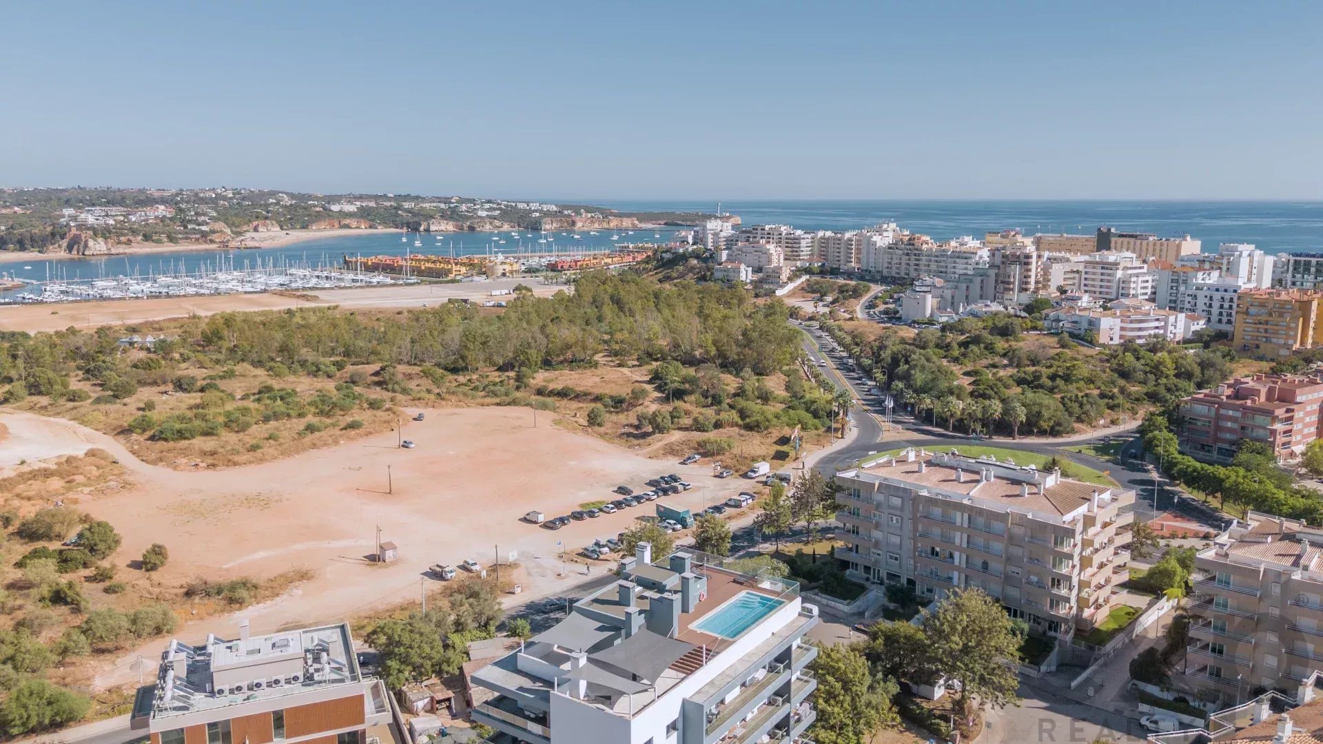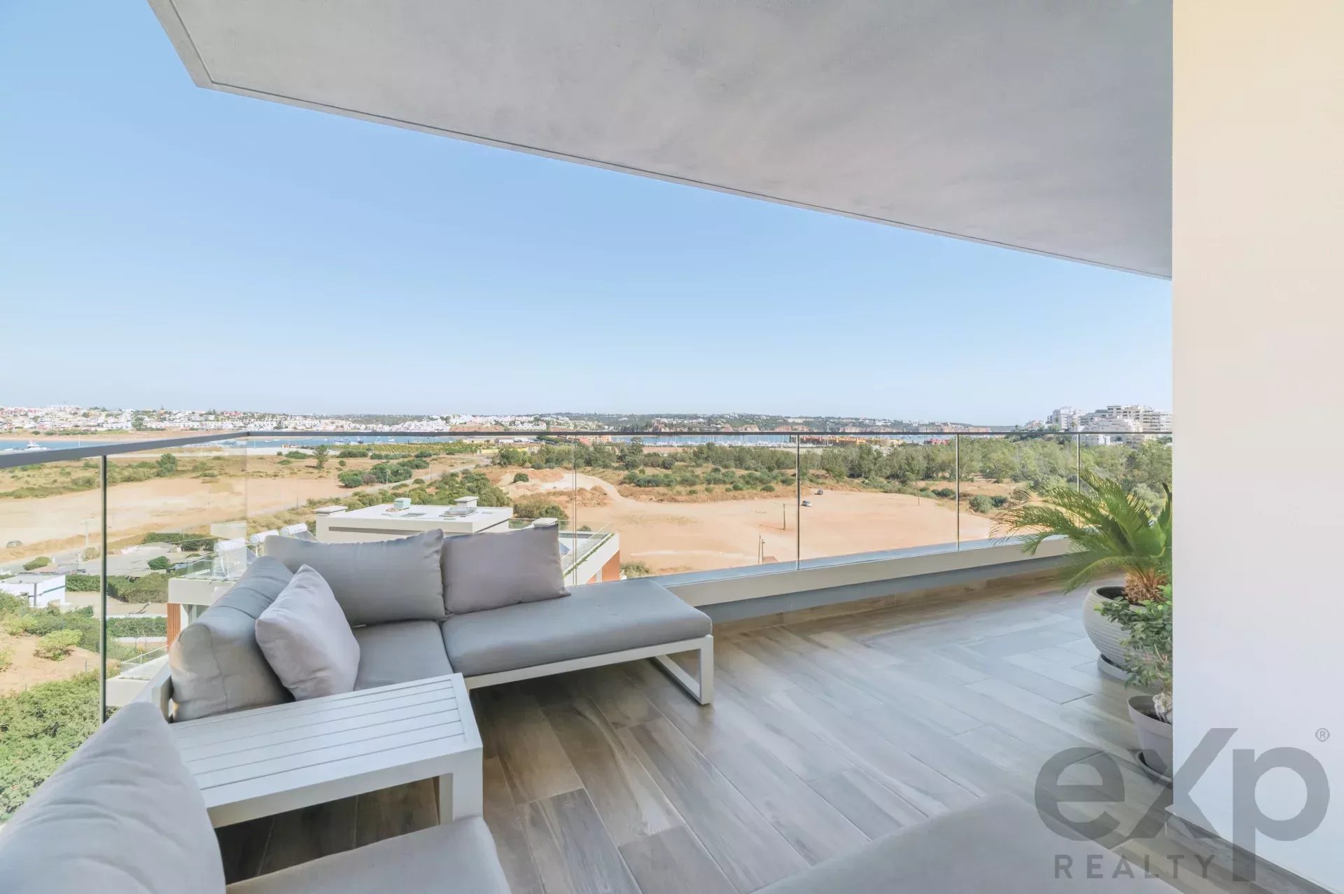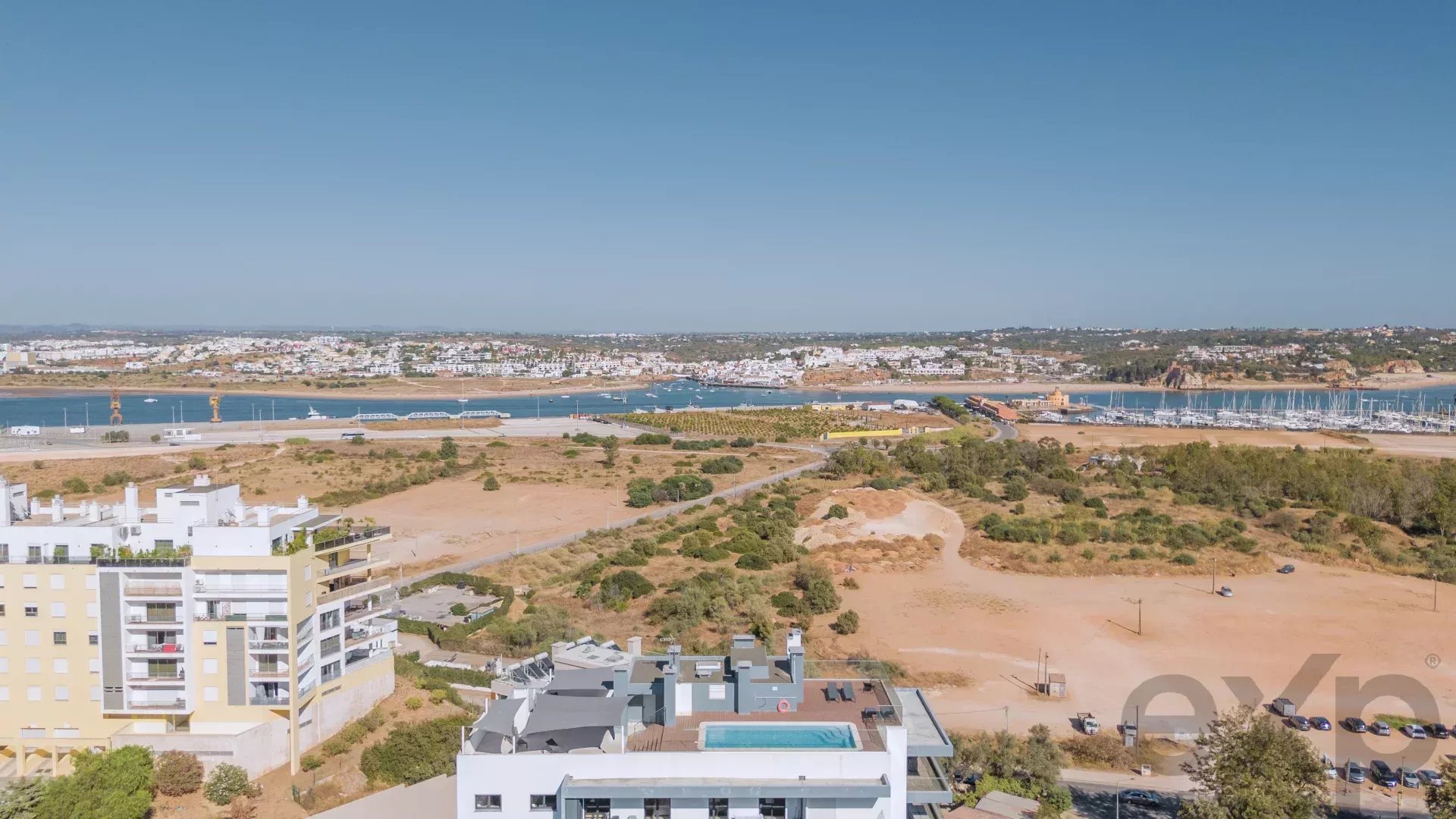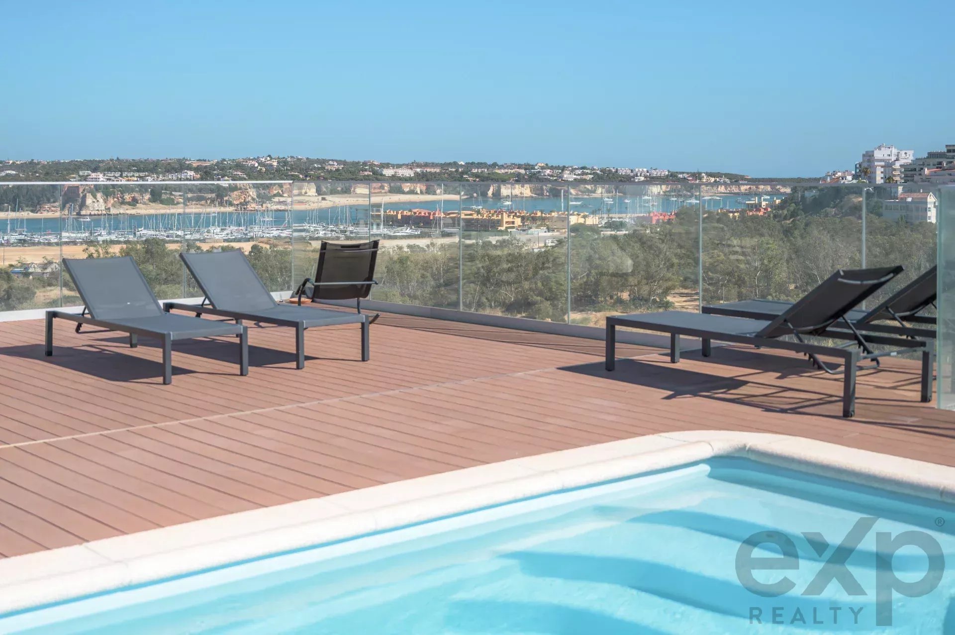 Top-floor architect-designed apartment in Encosta da Marina, with unobstructed views of the river and Portimão marina, a rooftop swimming pool, and an enormous sun-drenched terrace ideal for outdoor living and entertaining.