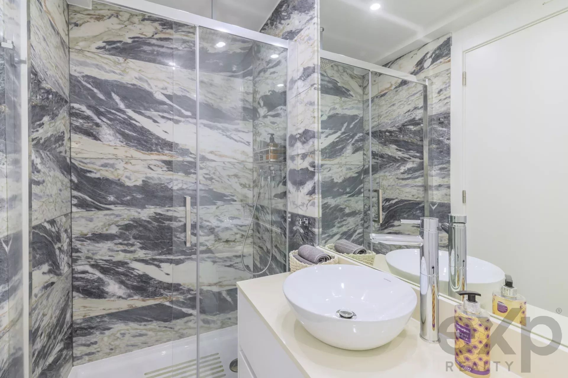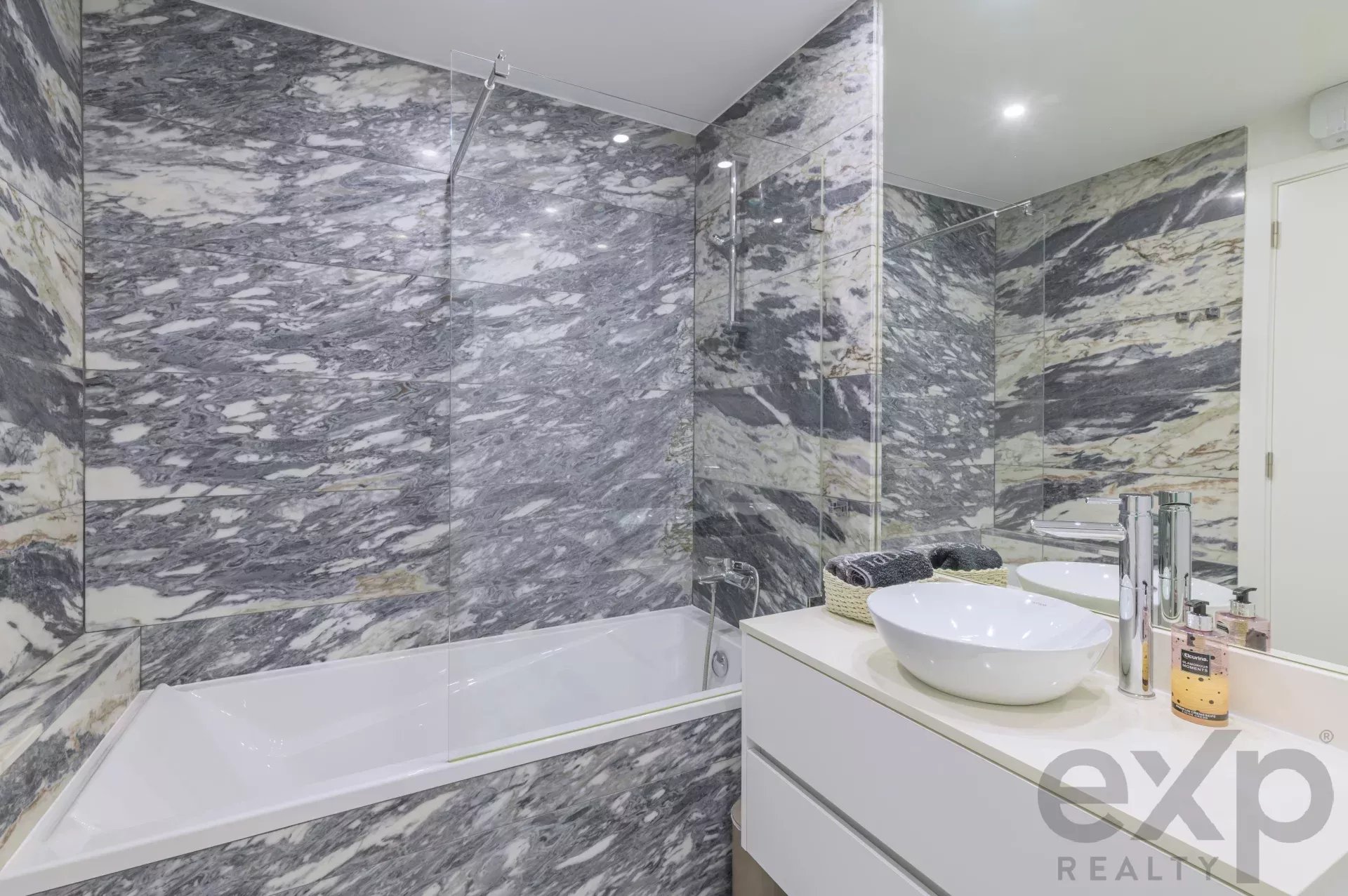 To the left of the living area, a private hallway leads to two spacious bedrooms, one of which is a serene en-suite retreat. The apartment’s elevated position guarantees peace and quiet, while the low-density layout ensures privacy and comfort.